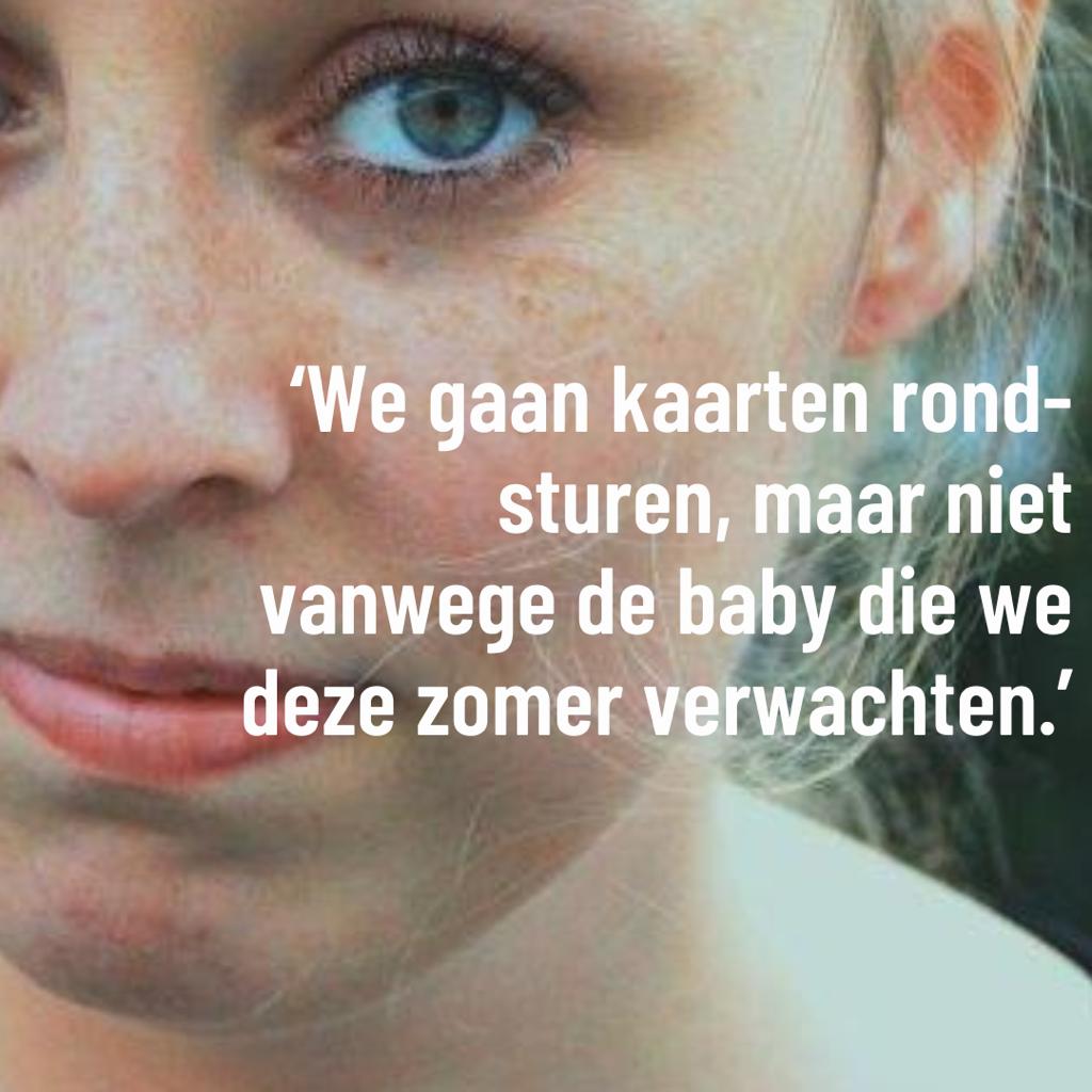 Mijn man en ik gaan inderdaad kaarten rondsturen, maar niet vanwege de baby die we deze zomer verwachten. Ze zijn voor het kind waarvan ik rond de jaarwisseling uitgerekend was. Het is een half jaar te vroeg ter wereld gekomen. Nu, een jaar later, willen we kaartjes rondsturen ter herinnering aan dit zo gewenste, geliefde, gemiste kind.