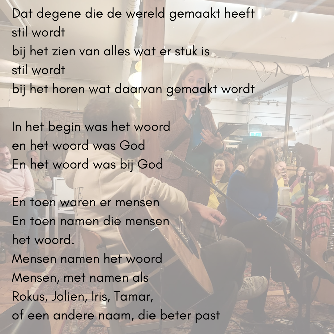 (Ik zet Tamars liedje in, dat we eerder op de avond met de hele zaal zongen:)