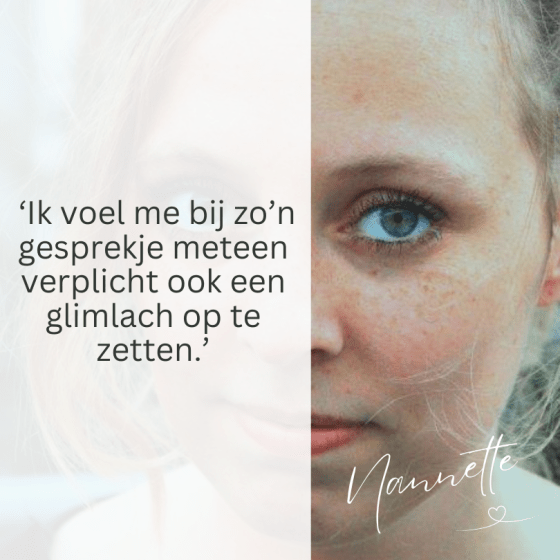 Alsof er op m’n voorhoofd staat ‘deze is niet helemaal in orde’. Dat gevoel heb ik, de allereerste keer dat … Meer